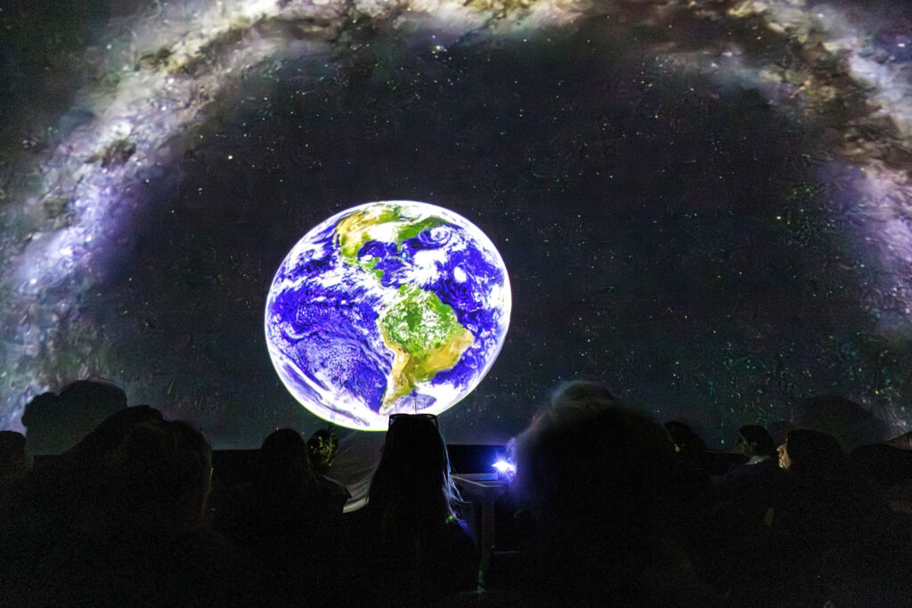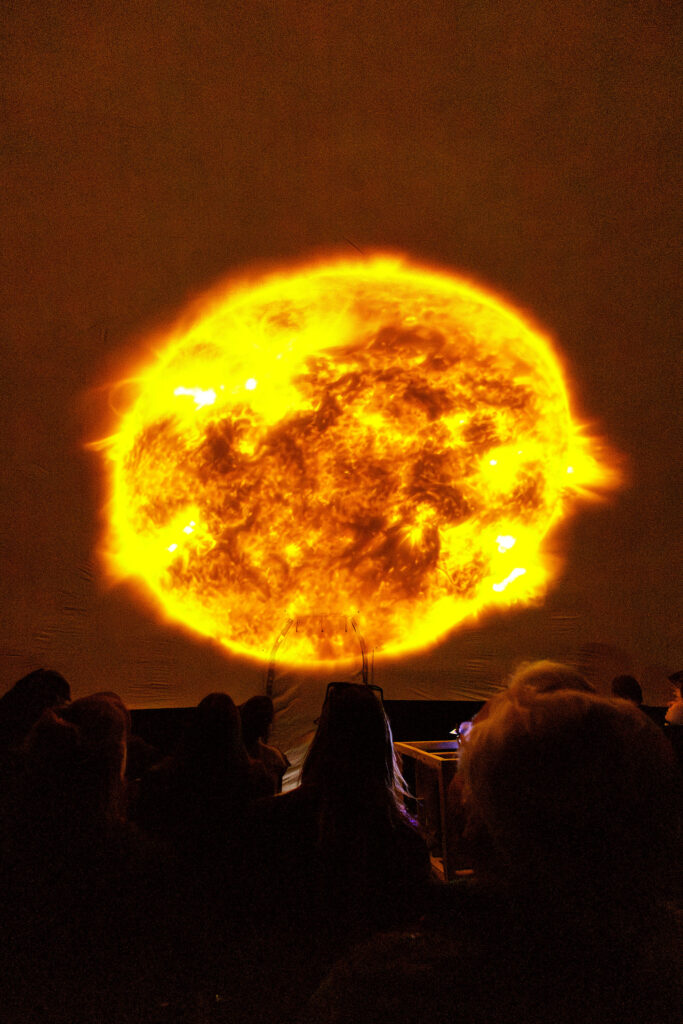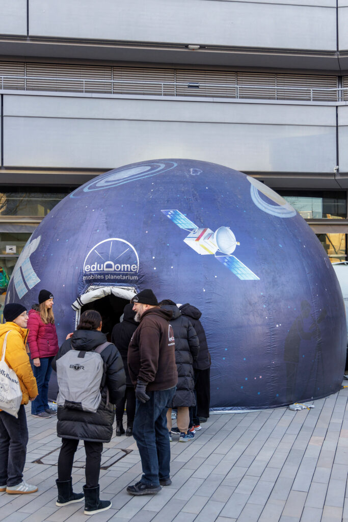 Throughout the day, a mobile planetarium set up in front of the Philosophikum Building of the University of Cologne offered special shows for the general public, schoolchildren, and event guests. Below some pictures from this part of the big event: